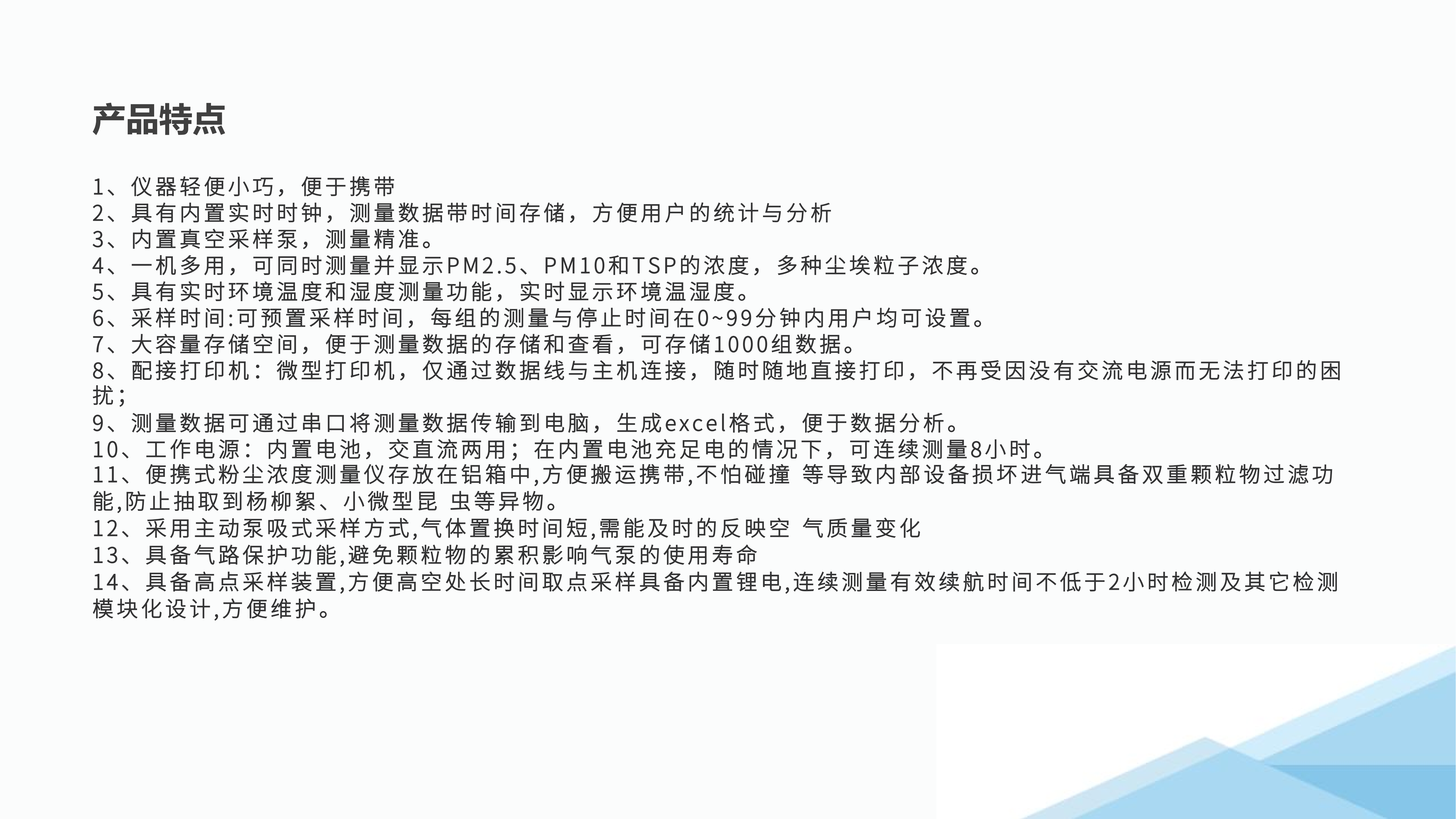 颗粒物参数 : PM2.5、PM10.0、TSP