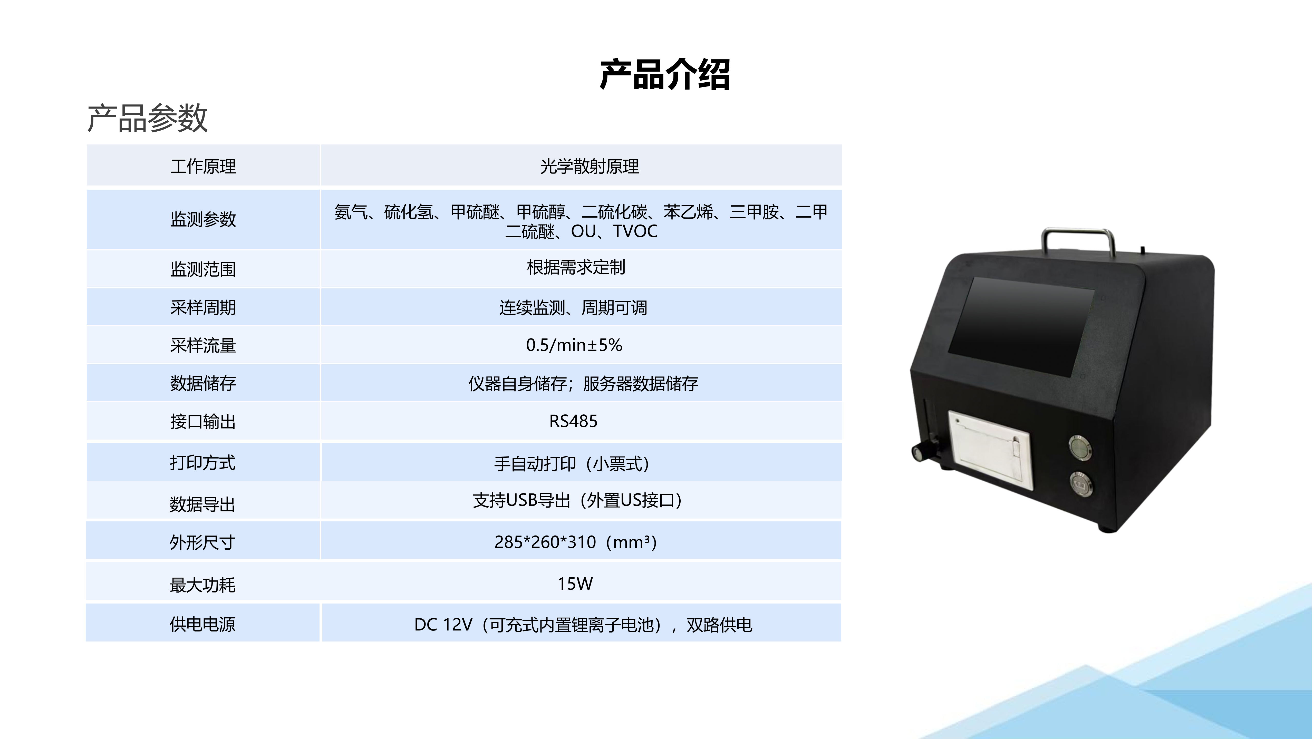 工业在线恶臭浓度检测仪产品参数:
